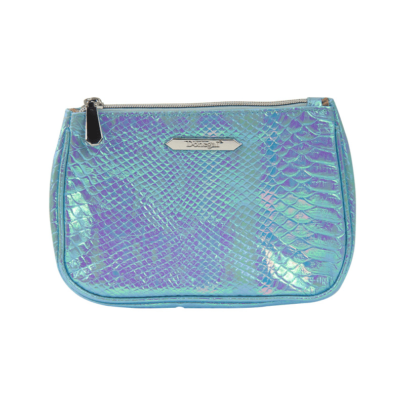 Damska kosmetyczka - saszetka o wyjątkowym wzorze i kolorystyce błękitnej, opalizującej skóry krokodyla.