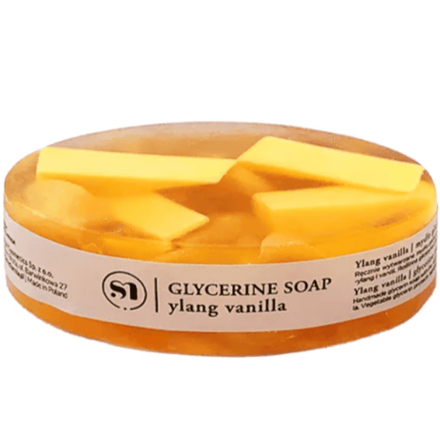 Ręcznie wytwarzane mydło glicerynowe o zapachu kwiatów ylang-ylang i wanilii. Roślinna gliceryna chroni przed utratą wody z naskórka.
