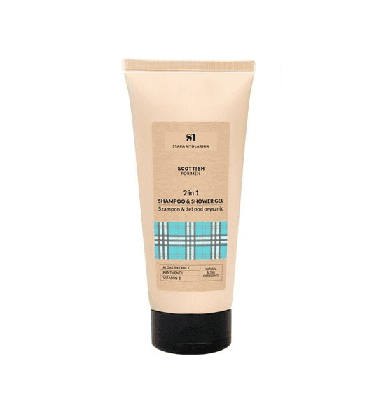 Scottish For Men 2w1 - szampon i żel pod prysznic. Nowa formuła orzeźwiającego żelu pod prysznic i szamponu w jednym - stworzona z myślą o kompleksowej pielęgnacji męskiej skóry. Receptura została wzbogacona o roślinną glicerynę, wit. E i B5 oraz ekstrakt z alg morskich. Skutecznie oczyszcza i odświeża skórę oraz włosy.